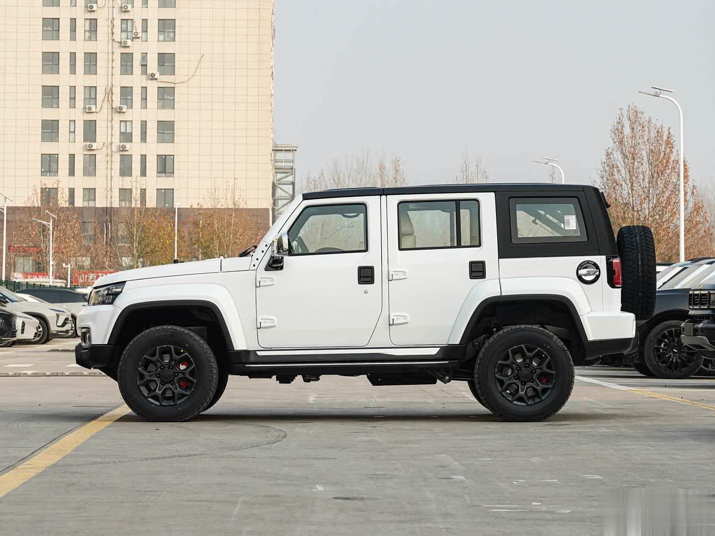 北京越野BJ40探险家的车身顶篷依旧为可拆卸式设计,提供外露式金属防滚架和RMI防侧翻控制系统,还有外扩式方形轮拱、外挂式备胎、侧开式尾门等设计,彰显着阳刚与野性,整车长宽高分别为4630/1925/1871毫米,轴距为2745毫米,新车接近角37度、离去角31度,纵向通过角23度,全系标配后桥差速锁及2.5吨牵引资质。