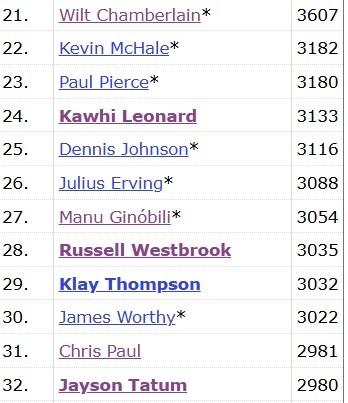塔图姆季后赛生涯的总得分已经超越克里斯·保罗,上升至NBA历史第31位.